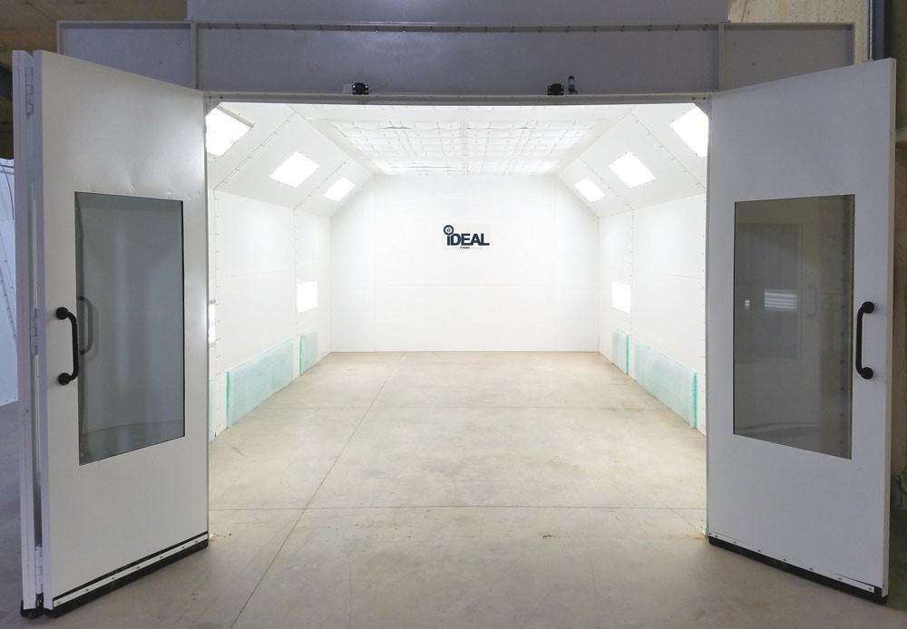 iDEAL’s PSB-SDD26-ASY-AK Side Down Draft Paint Booth is our highest quality pressurized paint booth. The Side Down Draft design pulls filtered air through ceiling of the booth and exhausts filtered air through bottom of the side walls of the booth. All of the panels receive a durable powder coat finish. Panels are constructed using 18 gauge flanged panels assembled using high quality 5/16″ hardware for a high quality, durable booth. Heavy duty hinges are used for all entry doors and have horizontal and vertical adjustment integrated into the design for easy installation. Our hip roof design utilizes vertical and horizontal lighting for effective, shadow free lighting to allow the painter to move around the booth with no light interference. The Side Down Draft Paint Booth is a pressurized booth that can be used for automotive refinishing, industrial finishing and furniture finishing.